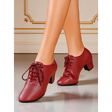Naisten viininpunaiset nahkaiset tanssikengät - mukavat nauhalliset harjoittelukorkokengät tanssi-, latino- ja jazz-esiintyjien harjoitteluun
