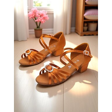 tyttöjen juhlatanssikengät - ruskeanruskeat satiininauhaiset latinalaiset tanssisandaalit matalalla korolla ja nilkkahihnalla