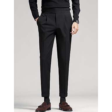 Miesten Valmistujaiset Puvunhousut Housut Laskostetut housut Pukuhousut Tasku Hight Rise Yhtenäinen väri Mukavuus Pehmeä Nilkkapituinen Päivittäin Bile Tyylikäs Vintage Musta Valkoinen Korka vyötärö