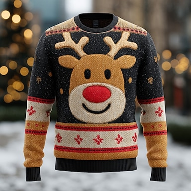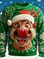 Ruma joulupaita Miesten Hirvi 3D-tulostus Lumihiutale Neulepusero Knitwear Pyöreäkauluksinen Vapaa-aika Loma Päivittäin Festivaali Pidä Lämmin Pitkähihainen Kevät Syksy Talvi Musta Rubiini Apila