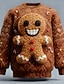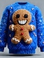 Ruma joulupaita Miesten 3D-tulostus Piparkakut miehet Sarjakuvahahmo Neulepusero Knitwear Pyöreäkauluksinen Vapaa-aika Loma Päivittäin Festivaali Neulominen Pidä Lämmin Pitkähihainen Kevät Syksy Talvi