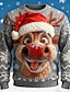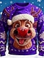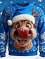 Ruma joulupaita Miesten Hirvi 3D-tulostus Neulepusero Knitwear Pyöreäkauluksinen Vapaa-aika Loma Päivittäin 3D-tulostus Pidä Lämmin Pitkähihainen Kevät Syksy Talvi Rubiini Sininen Purppura