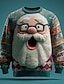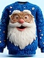 Ruma joulupaita Miesten Joulupukki 3D-tulostus 3D sarjakuva Neulepusero Knitwear Pyöreäkauluksinen Vapaa-aika Loma Päivittäin Neulominen Pidä Lämmin Pitkähihainen Kevät Syksy Talvi Järven sininen