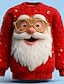 Ruma joulupaita Miesten Joulupukki 3D-tulostus Neulepusero Knitwear Pyöreäkauluksinen Vapaa-aika ulko- Joululahjat Loma Pidä Lämmin Pitkähihainen Syksy Talvi Rubiini Apila
