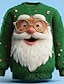 Ruma joulupaita Miesten Joulupukki 3D-tulostus Neulepusero Knitwear Pyöreäkauluksinen Vapaa-aika Loma Päivittäin Festivaali 3D-tulostus Pidä Lämmin Pitkähihainen Kevät Syksy Talvi Viini Rubiini Apila