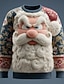 Ruma joulupaita Miesten Joulupukki 3D-tulostus Neulepusero Knitwear Pyöreäkauluksinen Vapaa-aika Loma Päivittäin Festivaali 3D-tulostus Pidä Lämmin Pitkähihainen Kevät Syksy Talvi Valkoinen Sininen