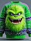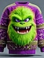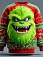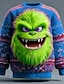 Ruma joulupaita Miesten 3D-tulostus 3D sarjakuva Sarjakuvahahmo Neulepusero Knitwear Pyöreäkauluksinen Vapaa-aika ulko- Loma Festivaali Neulominen Pidä Lämmin Pitkähihainen Kevät Syksy Talvi Rubiini
