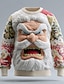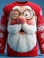 Ruma joulupaita Miesten Joulupukki 3D-tulostus Neulepusero Knitwear Pyöreäkauluksinen Vapaa-aika Loma Päivittäin Festivaali 3D-tulostus Pidä Lämmin Pitkähihainen Kevät Syksy Talvi Valkoinen+punainen