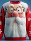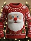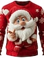 Ruma joulupaita Miesten Joulupukki 3D-tulostus Neulepusero Knitwear Pyöreäkauluksinen Vapaa-aika Loma Päivittäin Festivaali Pidä Lämmin Pitkähihainen Kevät Syksy Talvi Punainen -1 Punainen -2
