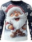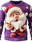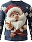 Ruma joulupaita Miesten Joulupukki 3D-tulostus Neulepusero Knitwear Pyöreäkauluksinen Vapaa-aika Loma Päivittäin Festivaali Pidä Lämmin Pitkähihainen Kevät Syksy Talvi Musta A Musta B Musta