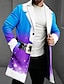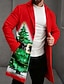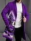 Christmas Miesten Joulukuusi 3D-tulostus Päällystakki Takki Vapaa-aika Päivittäin Pyhäpäivä Festivaali 2 in 1 Napit Edessä tasku Kevät Syksy Talvi Lovikäänne Pitkähihainen Rubiini Sininen Purppura