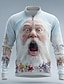 Christmas Miesten Joulupukki Polo Pitkähihainen Pystykaulus Ruma Rento arki Loma Festivaali 3D-tulostus Kevät Syksy Talvi Valkoinen 1 Valkoinen 2 Valkoinen 3
