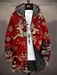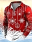 Christmas Miesten Joulupukki Paita Button Up paita Pitkähihainen Vapaa-aika Juhla-iltavaatteet Päivittäin Syksy Talvi Kevät kesä Paitapuserokaula-aukko Painike ylös 3D-tulostus Keltainen Rubiini