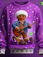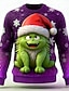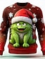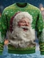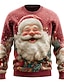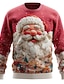 Ruma joulupaita Miesten Joulupukki 3D-tulostus 3D sarjakuva Neulepusero Knitwear Pyöreäkauluksinen Vapaa-aika Loma Päivittäin Festivaali Pidä Lämmin Pitkähihainen Syksy Talvi Musta Rubiini Apila