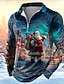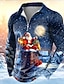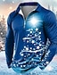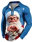 Christmas Miesten Joulupukki Vetoketjulliset poolopaidat Pitkähihainen Poolopaidat Kauluskäänne Vapaa-aika ulko- Festivaalin asu 3D-tulostus Kevät Syksy Talvi Sininen 1 Sininen 3# Sininen 2#
