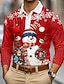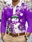 Christmas Miesten Lumiukko Polo Pitkähihainen Poolopaidat Kauluskäänne Vapaa-aika ulko- Katu Arki-asut 3D-tulostus Napit Kevät Syksy Talvi Rubiini Sininen Purppura