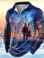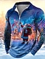 Miesten Lumiukko Joulukuusi Poolopaidat Zip Polo Golf poolopaidat Pitkähihainen Poolopaidat Sänkyjen avaus Vetoketju Vapaa-aika ulko- Rento / arki Katuvaatteet 3D Painettu Musta Sininen Multi Color