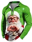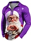 joulu miesten joulukohtaus 3d vetoketju poolo golf puu joulupukki graafiset tulosteet yökuntoon laitto valkoinen pinkki sininen purppura vihreä 3d print katu pitkähihainen vetoketju painatus vaatteet