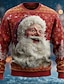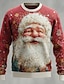 Ruma joulupaita Miesten Joulupukki 3D-tulostus 3D sarjakuva Neulepusero Knitwear Pyöreäkauluksinen Vapaa-aika Loma Päivittäin Neulominen Pidä Lämmin Pitkähihainen Kevät Syksy Talvi Punainen -1