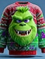 Ruma joulupaita Miesten 3D-tulostus 3D sarjakuva Neulepusero Knitwear Pyöreäkauluksinen Vapaa-aika Loma Päivittäin Festivaali 3D-tulostus Neulominen Pidä Lämmin Pitkähihainen Kevät Syksy Talvi