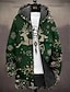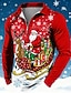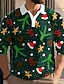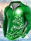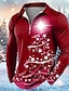 Christmas Miesten Kuvitettu Polo Pitkähihainen Sänkyjen avaus Moderni Vapaa-aika ulko- Loma Festivaali Vetoketju 3D-tulostus Kevät Syksy Talvi Rubiini Sininen Apila