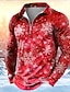 Christmas Miesten Lumihiutale Vetoketjulliset poolopaidat Pitkähihainen Poolopaidat Kauluskäänne Vapaa-aika ulko- Festivaalin asu 3D-tulostus Kevät Syksy Talvi Järven sininen Punainen 1 Sininen