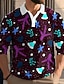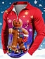 Christmas Miesten Piparkakut miehet Polo Pitkähihainen Poolopaidat Kauluskäänne Vapaa-aika ulko- Arki-asut Festivaalin asu 3D-tulostus Napit Kevät Syksy Talvi Sininen Purppura Apila