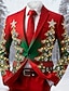 Christmas Miesten Joulukuusi Blazer-takki Mukava Taiteellinen Vapaa-aika Juhla-iltavaatteet Päivittäin Festivaali 3D-tulostus Napit Kevät Syksy Talvi Lovikäänne Pitkähihainen Punainen 1 Rubiini