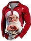 Christmas Miesten Joulupukki Polo Pitkähihainen Poolopaidat Kauluskäänne Vapaa-aika Pyhäpäivä Arki-asut Festivaalin asu 3D-tulostus Quarter Zip Polo Kevät Syksy Talvi Punainen 1 Punainen 2