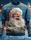 Ruma joulupaita Miesten Joulupukki 3D-tulostus Neulepusero Knitwear Pyöreäkauluksinen Vapaa-aika Loma Päivittäin Festivaali 3D-tulostus Pidä Lämmin Pitkähihainen Kevät Syksy Talvi Sininen Taivaan