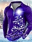 Christmas Miesten Joulukuusi Vetoketjulliset poolopaidat Pitkähihainen Poolopaidat Kauluskäänne Vapaa-aika ulko- Festivaalin asu 3D-tulostus Kevät Syksy Talvi Rubiini Sininen Purppura