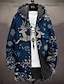 Christmas Miesten Eläin Hirvi Talvitakki Fleecetakki Takki Pidä lämpimänä Mukava Vapaa-aika Loma Arki-asut Festivaali Vetoketju Tasku 3D-tulostus Syksy Talvi Hupullinen Pitkähihainen Rubiini Sininen