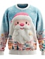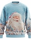 Ruma joulupaita Miesten Joulupukki 3D-tulostus 3D sarjakuva Neulepusero Knitwear Pyöreäkauluksinen Vapaa-aika Loma Päivittäin Festivaali Neulominen Pidä Lämmin Pitkähihainen Kevät Syksy Talvi Sininen