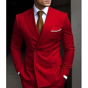 Miesten Häät Tanssiaiset Puvut Musta Punainen Yhtenäinen Räätälöity istuvuus 2-osainen setti Yksirivinen yksi nappi