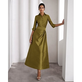 A-Linjan morsiamen äidin cocktailmekot Elegantti virallinen häiden vieras nilkkapituus pitkät hihat kauluskotelo taftingilla halkiolla