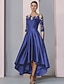 A-linja morsiamen äidin mekko häävieras elegantti korkeampi matalempi pyöreä pääntie epäsymmetrinen teen pituus satiini pitsi 3/4 pituinen hiha laskoksilla applikaatioilla