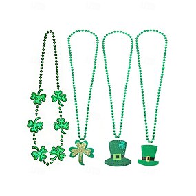 Naisten akryylikaulakoru Pyhän Patrickin päiväksi, jossa apila- ja hattukuvioita, useita tyylejä, vihreät helmet, täydellinen juhla-asusteeksi