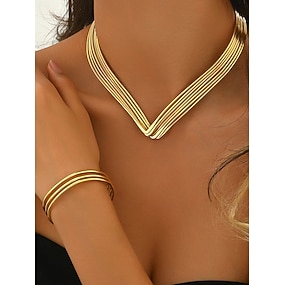 Naisten kullattu geometrinen korusetti - moderni kerrostettu V-kaulakoru ja avoin hihansuu rannekoru naisille, ihanteellinen cocktail-juhliin, työtapahtumiin ja iltapukuihin