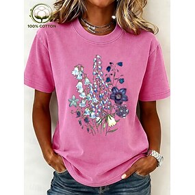 Naisten 100% Cotton T-paita Painettu Kukka Kuvitettu Kasvit Vintage Tyylikäs Klassinen Lyhythihainen Tiukka pyöreä kaula-aukko Tavalliset topit Kausaliteetti Päivittäin Viikonloppu Valkoinen Kes