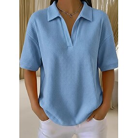 Naisten Vohveli paita Yhtenäinen väri Tyylikäs Aktiivinen Loma Puolihiha V kaula-aukko Pitkät topit Päivittäin ulko- Katuvaatteet Musta Valkoinen Rubiini Taivaan sininen Oranssi Kesä Kevät Syksy
