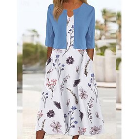 Naisten Mekko Sarja Maxi Mekko 2 Kappaletta Kesä Mekko Sopiva Ja Leveä Mekko Juhlavalmis Kukkaprintti Puolipitkä Hiha V-kaula Virallinen Loma Vaaleanpunainen Sininen Vihreä Kesä Kevät Säännöllinen