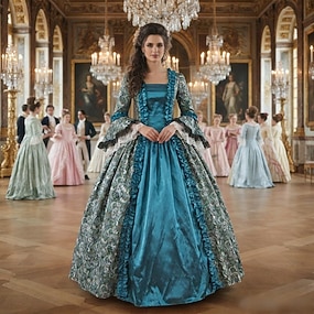 Rokokoo Viktoriaaninen Coctail-asu Kokopitkä Pitkä Pituus Mekot Juhla-asu Asu Pluskoko Leveä kalvosinnapit Prinsessa Neliö Naamiaispuku Naisten Kuninkaallinen Naamiaiset Juhlat Venetsian karnevaali