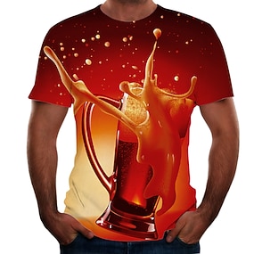 Miesten Kuvitettu Olut Paita T-paita Lyhythihainen T-paita 3D-tulostus Pyöreä kaula-aukko Paita Katutyyli Perus Päivittäin Klubi Keltainen Rubiini Purppura Kesä Vaatetus Pluskoko S M L XL 2XL 3XL