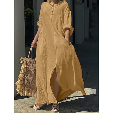 Naisten Maksimekko Keinopuuvillainen pellava Paitamekko Valkoinen mekko Musta mekko Muoti Päivittäin Klassinen Päivittäin ulko- Loma Loose Fit Tavallinen Pitkähihainen Stand-kaula-aukko Sininen Musta