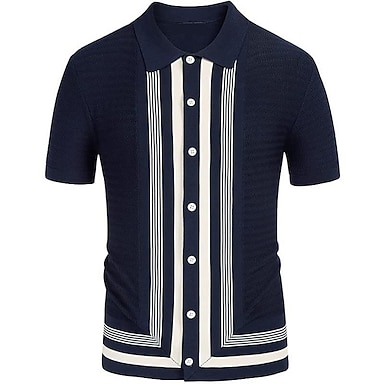 Miesten Vohveli poolopaidat Kausaliteetti Pyhäpäivä Pystykaulus Lyhythihainen Perus Moderni Skottiruutukuvio Väripalikka Väripaletti Napit Kesä Kevät rennosti istuva Sininen Musta Laivaston sininen