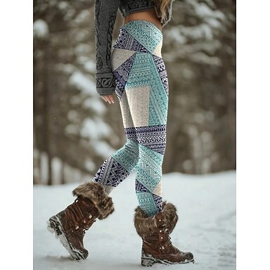 Naisten Leggingsit Loma Vintage Etninen tyyli Täyspitkä Korka vyötärö Kuvitettu Geometrinen Paisley-kuvio 3D-tulostus Nopea kuivuminen Hengitettävyys Pehmeä Elastinen Talvi Sininen Tummanpunainen