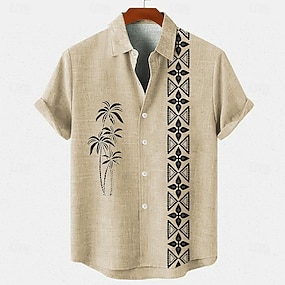 Miesten pellava paita Rantapaita Havaiji paita Button Up paita Kookospuu Loma Havaijilainen Valkoinen Vihreä Khaki Tumman sininen Lyhythihainen Kauluskäänne Kevät kesä Vaatetus Painettu