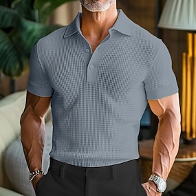 Miesten Vohveli poolopaidat Textured Kausaliteetti Pyhäpäivä Kauluskäänne Ribbineulospikeekaulus Lyhythihainen Muoti Perus Tavallinen Napit Soft Kesä Kevät Normaali Valkoinen Keltainen Viininpunainen