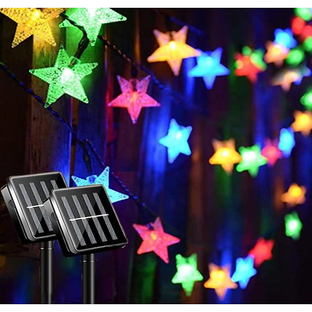 - Aurinkovoimalla toimivat LED-tähtivalot, päivitetty aurinkopaneeli, tehokas ja kestävä, ei tarvitse johtoja, energiansäästöä. - 16,5 jalkaa/23 jalkaa/39,5 jalkaa 50LED-ketju on tarpeeksi pitkä luomaan kauniin lämpimän pehmeän valon, ei liian kirkas, mutta lisää hyvää tunnelmavalaistusta puutarhaan, patiolle, parvekkeelle, aidalle, ulkoportaille, retkeilyteltalle, patiovarjostimelle. - 8 Valaistustilaa: yhdistelmä, aalto, peräkkäinen, hidastus/välkkyminen, jahtaa/välähdys, hidastuva haalistus, välkkyä/välähdys ja tasainen päällä. 8 erilaista asetusta tyydyttää monipuoliset tarpeesi. - Aurinkoiset valot, sisäänrakennettu valoanturi, syttyy automaattisesti yöllä ja sammuu automaattisesti päivänvalossa, erittäin helppokäyttöinen. - Korkeatehoinen suuri aurinkopaneeli, sisäänrakennettu suuri 600 mAh:n akku, latautuu täyteen noin 8-10 tunnissa, aurinkoisten tähtisadetähtien toiminta jopa 8-10 tuntia täyteen ladattuna. - IP65 Vedenkestävät tähtivalonauhat, erityisesti suunniteltu ulkokoristeluun, täydellinen asuntovaunun katoksen, patioiden, takapihojen, ikkunoiden, ulkopuiden, uima-altaan, aidan koristeluun. Luo täydellisen tunnelman paikkaasi. - Tilaisuusideat: ulkoisten juhlien koristelu, joulun ulkokoristelu, kesävalojen koristelu, ramadan eid -valot, häät, maisema, kauniit kotivalot.