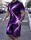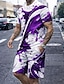 Miesten 3D-tulostus 2kpl T-paidat setit Kesän yläosat Lyhythihainen Lyhyet housut Tiukka pyöreä kaula-aukko Urheilu Vapaa-aika ulko- Loma Päivittäin Printed Kesä Violetti Punarinnan munan sininen